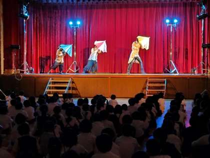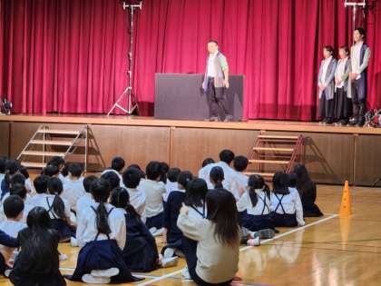 子どもたちの「鑑賞」の態度が素晴らしく、舞台に集中して自然と湧き上がる拍手・歓声に、劇団の方々から
