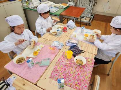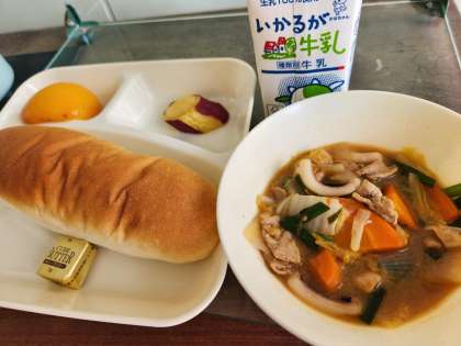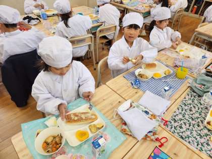 今日はコッペパンにバターがついていますので、みんなうれしそうに“ぬりぬり”しています!