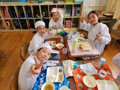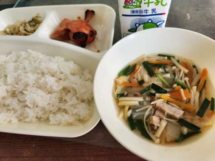 今日の給食に使われている「切干し大根」は、カルシウムや鉄分、ビタミンB群等が豊富に含まれています。また、食物繊維も豊富に含まれており、お腹の調子を整え、便秘の予防や肥満の予防に役立つ食材です。