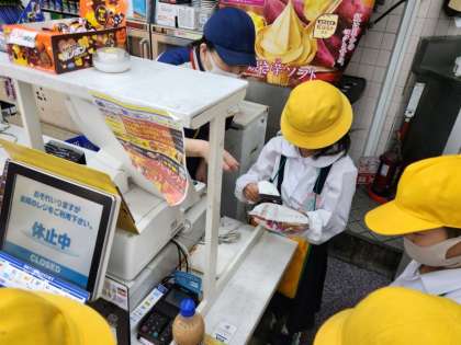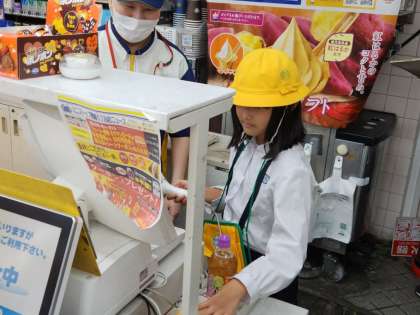 お客さんと店員さんの役に分かれて、実際の商品を使ってバーコードを読み込み、お会計をするという体験をさせていただきました。