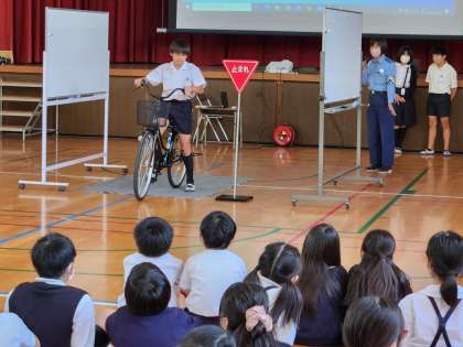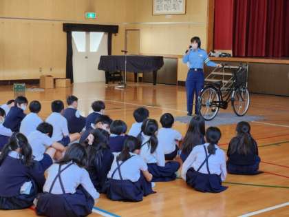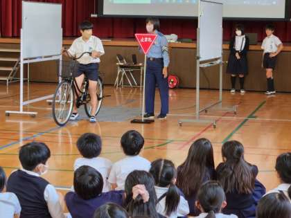 交通安全指導、高学年の部は、自転車の乗り方・ルールについて教えていただきました。