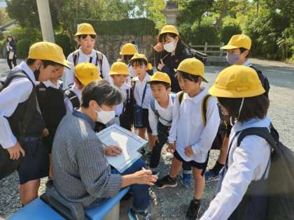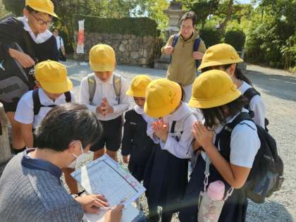 オリエンテーリングのポイントでは、先生方からクイズが出されることも…。