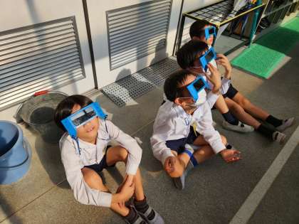 理科の時間に「太陽」や「光」のことについて学習している3年生。