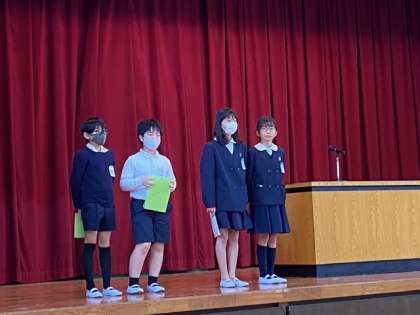 ひとりひとことで、5年生はハロウィンやたてわり遠足の思い出を、6年生は今週行くスポーツ交歓会への意気込みなどをしっかりと発表することができました。