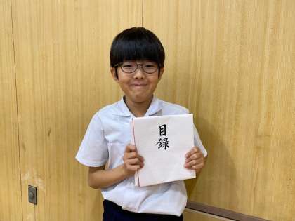 今日の全校朝会では、ひとりひとことと、先週お披露目をした書架と図書の目録の紹介がありました。