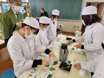 “美味しいお茶”のお湯出しを教えていただいた後、実際に自分たちでお湯出しをします。