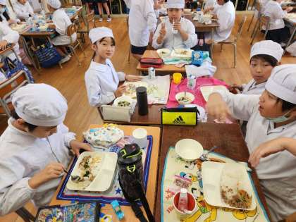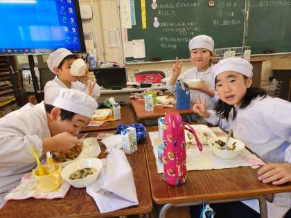 今日の給食時の様子は、4年生の写真を使っています。
