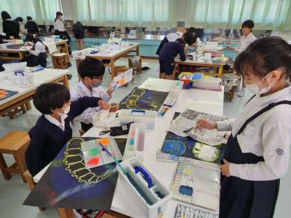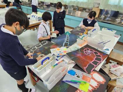 作品展に向けて、5年生が絵画作品の制作に取り組んでいます。