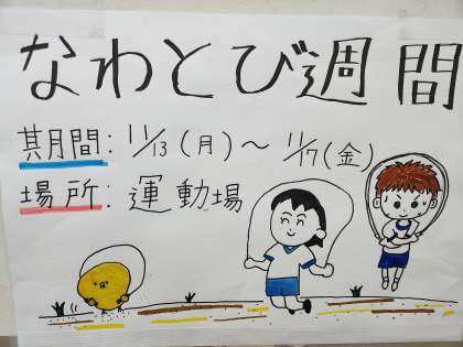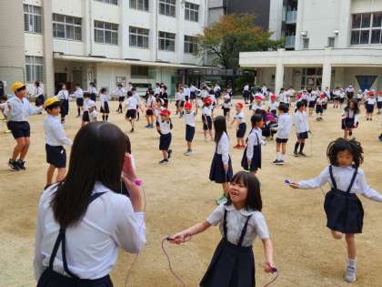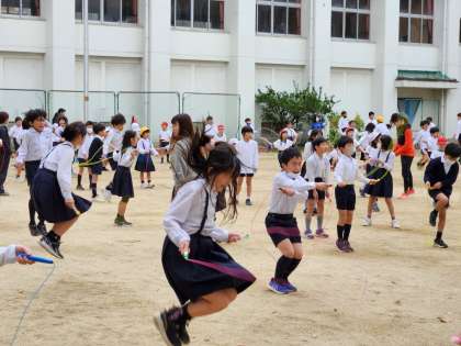 寒くなるにつれ、学校では体育の準備運動などで「なわとび」をすることが多くなりますが、1年生から6年生まで全員が一緒に「なわとび」をすることで、楽しく運動できる機会になればと考えています。