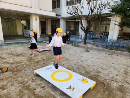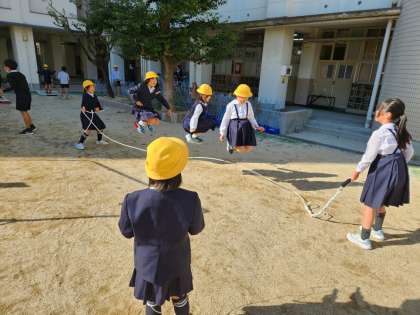休み時間には、運動場で“とびなわ”を使って遊ぶ子が多くみられました。