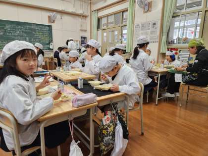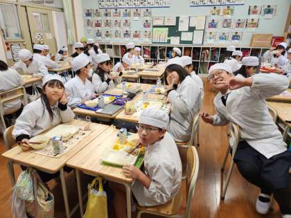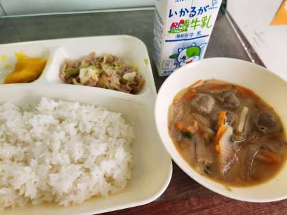 今日は「かぼちゃペースト」を混ぜた「かぼちゃういろう」が献立に登場しています。