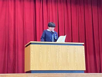 その後ギャラリー表彰と、ひとりひとことがありました。ひとことでは、家のお手伝いを頑張っていることや、修学旅行で学んだ海洋ゴミについての発表がありました。考えたことを、筋道立てて話すことができていました。さすが高学年ですね!