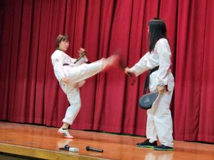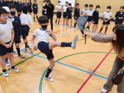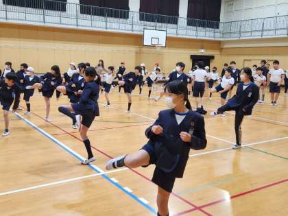 テコンドーの基本的な動きを教えていただき、実際に練習してみます。