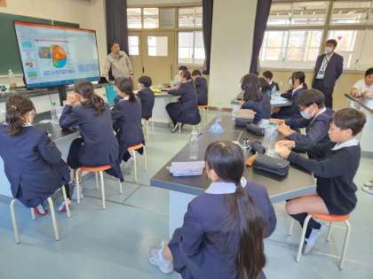 今年度、大阪市が行っている「理科特別授業」に豊崎小学校が応募し、本日、株式会社 竹中土木から講師の先生方にお越しいただき、6年生を対象に講話と実験の授業が行われました。