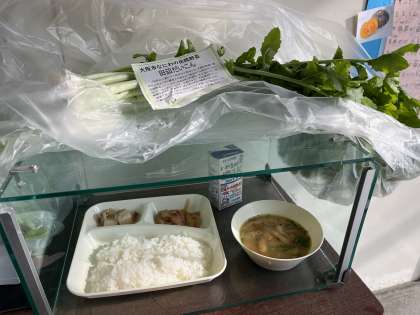 今日は、なにわの野菜「田辺だいこん」がふんだんに使われた給食でした。汁物にはだいこんの葉が、おかずにはだいこんの煮物が添えられました。江戸時代から栽培されてきた田辺だいこんですが、一時期作られなくなっていたものを、昭和の最後に復活させて、今また徐々に食べられるようになっています。