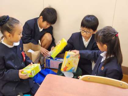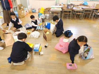 1年生は算数の時間、「かたちあそび」の学習が始まりました。