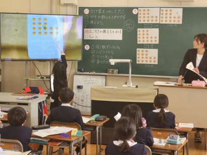 自分で考えた解き方を、みんなの前で説明できるようにしていきます。