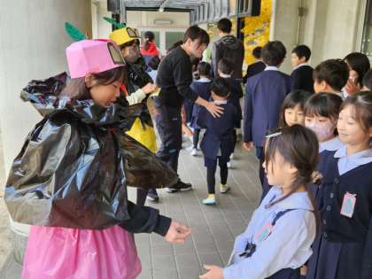 全校朝会終了後、“あいさつレンジャー”はさっそく出動!