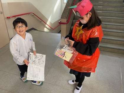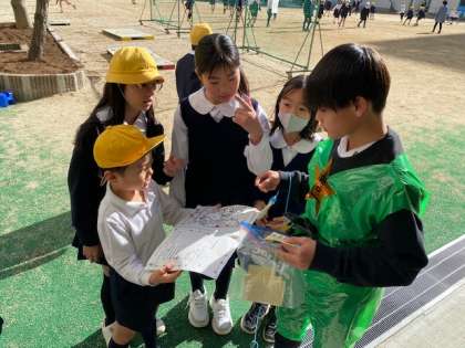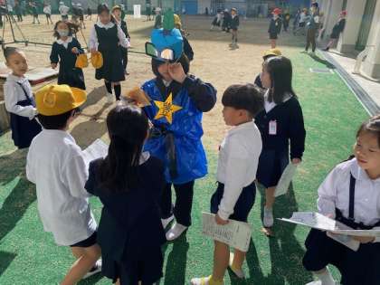 ?校舎の中だけでなく、運動場も、あいさつレンジャーたちは周ります。