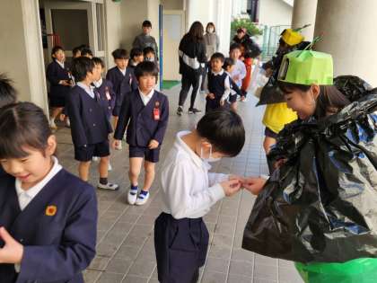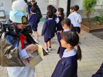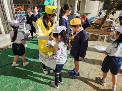 今日も校内のあちらこちらで、“あいさつレンジャー”が活躍しています!