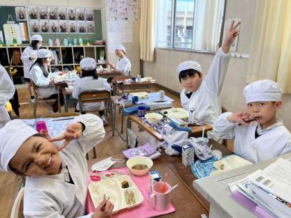 今日の給食時の様子は、2年生の写真を使っています。
