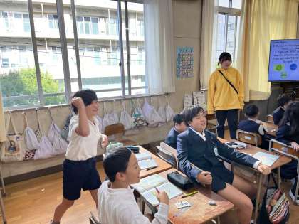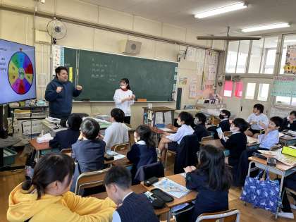 4年生はいつも陽気なエルウィン先生と英語の学習に取り組んでいました。先生に負けじと4年生も元気いっぱいで、オールイングリッシュでもノリノリで授業を楽しんでいました。今日は野菜や果物の名前を使ったゲームを英語で会話しながら取り組んでいました。