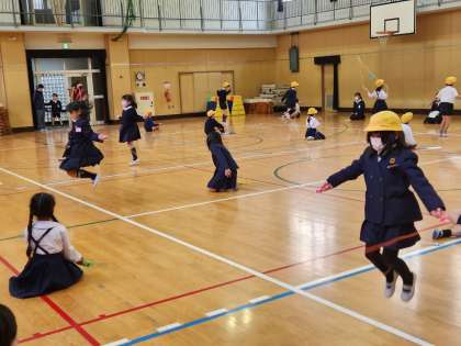 30秒でどれだけ“前跳び”ができるか、記録を取ります。