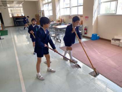 床の雑巾がけや壁の汚れ落としなど、日頃なかなかできない掃除を協力して行いました。