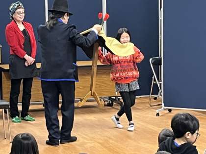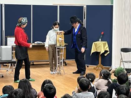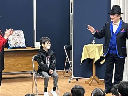 マジックショーの様子です。子どもたちも一緒にやってみましたが、どうなっているかは謎です。