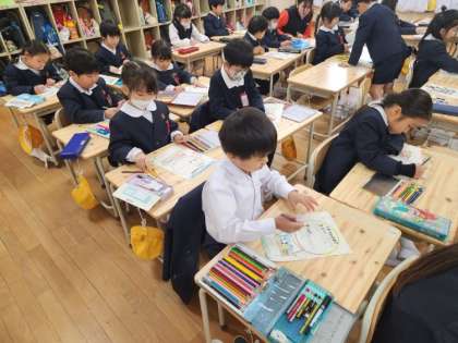 1年生は、冬休みの提出物の確認をした後、3学期のめあてを考えました。