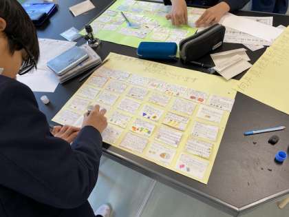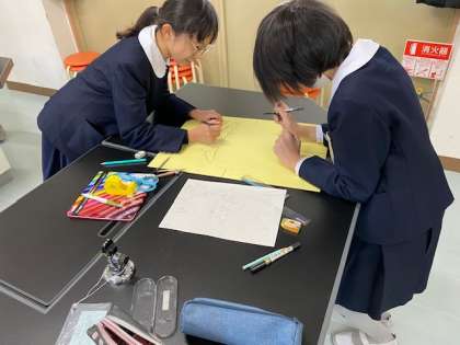 給食委員会は、調理員さんへの感謝のメッセージや、給食室に飾るカレンダーの作成に取り組んでいました。