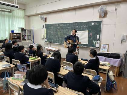 今日はゲストティーチャー・藤本先生による「5年1組 3学期 がんばるぞ!!コンサート」が開かれました。2学期までを振り返り、クラスの良かったこと、これから頑張りたいことを子どもたちが考え、その内容を最後は呼びかけと歌、ギター、リコーダー演奏で大いに盛り上げながら発表、また新学期の抱負として決意していました。