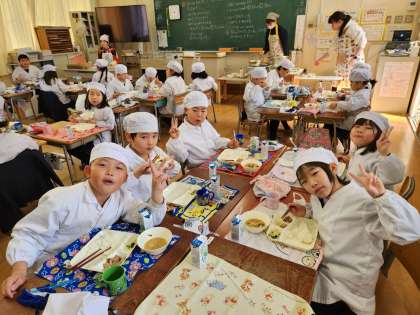 「菊菜」の生産量は大阪が全国で2番目に多く、大阪では「地の野菜」として昔から親しまれている野菜です。まさに今が「旬」の野菜で、今日は白菜と合わせて「おひたし」として美味しくいただきました。