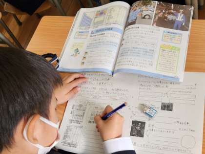 教科書にたくさん掲載されている資料を活用しながら、「資料を読み取る」力も身につけていきます。