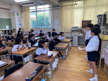 「冬休みにメダルゲームをして分かったこと」や干支の辰年にちなんで「龍とドラゴンの違い」など、いろいろなテーマでの発表が続きました。聞いている児童も、一生懸命聞き、質問などをしていました。
