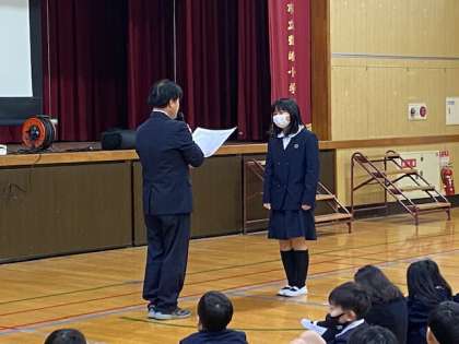 校長先生のお話の後に、「いのちのつながり」作文最優秀賞の表彰と、6年生の「ひとりひとこと」がありました。