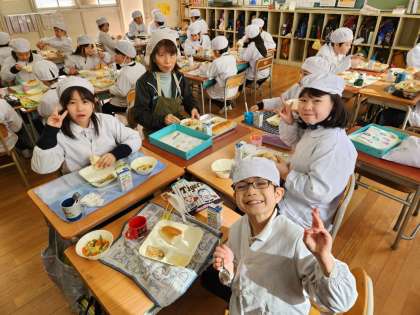 給食では栄養価の高い「お豆さん」を使った献立がよく登場しますが、今日は「てぼ豆」を使ったスープです。