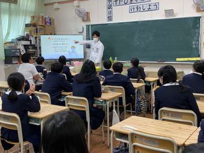 薬剤師の先生にお越しいただき、「おくすり講座」が6年生の教室でありました。