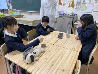 錠剤とカプセルの違いや、服用の仕方などを教えていただいた後、実験をしました。