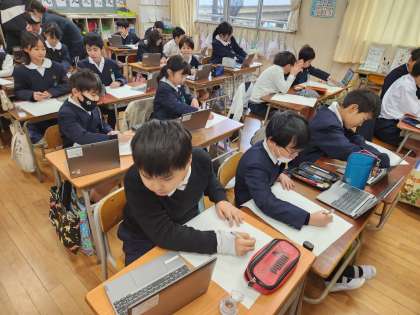 4年生は図画工作の時間、「木版画」の制作に取りかかりました。