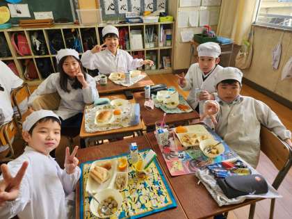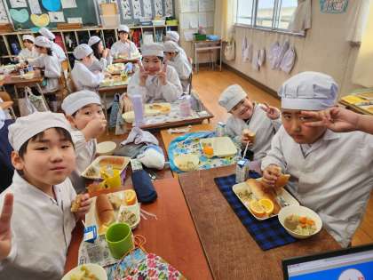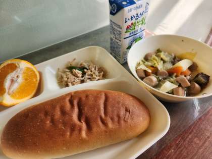 「ポトフ」は、フランスの家庭料理の一つで、肉や野菜、香草などを煮込み、スープと一緒にいただきます。給食では、牛肉やウインナー、じゃがいも、キャベツ、にんじん、パセリを使った、具だくさんな「ポトフ」になってます。