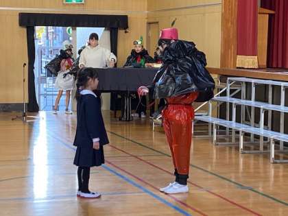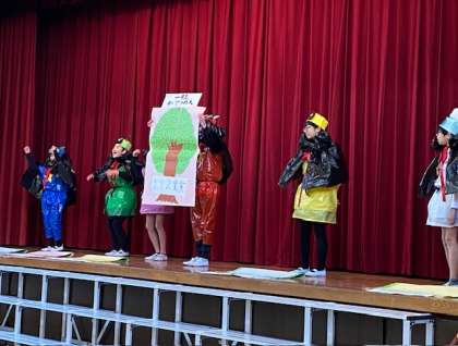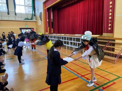 その後、あいさつすごろくの学年の2位と1位の表彰がありました。