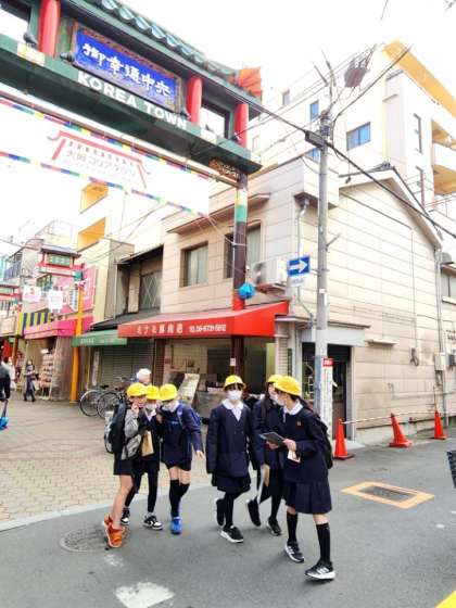 コリアタウンでは、班別に行動します。