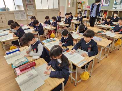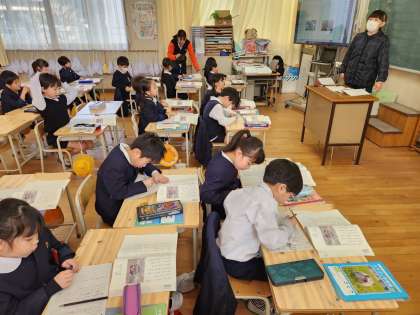 1年生は国語の時間に「子どもをまもるどうぶつたち」という説明文の学習をしています。