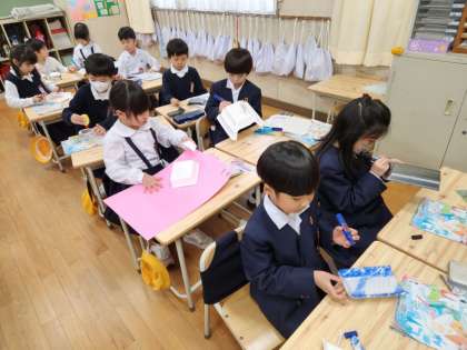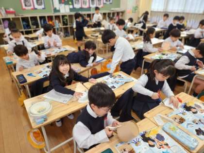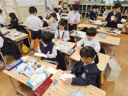 1年生は図画工作の時間に「ふわふわ ゴ〜」の制作に取り組んでいました。