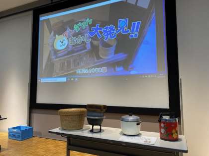 まずは、映像を観たり、実物の昔の道具などを使ってみたりする体験学習からスタートです。