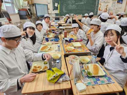 今日の給食時の様子は、6年生の写真を使っています。