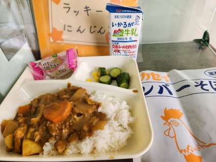今日のカレーライスには、栄養価の高いペースト状の「チキンレバー」が使われおり、給食サンプルのところに、調理員さんが実物を置いてくださいました。