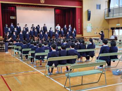 5年生とともに合同で練習をしましたが、5年生も6年生も1回目の合同練習とは思えない立派な“よびかけ”や“合唱”ができていました。