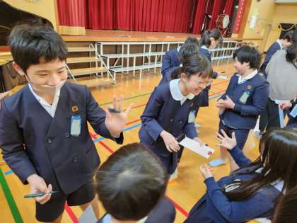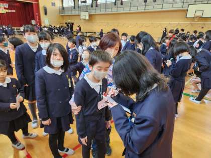 たて割り班でお世話になったおにいさん、おねえさんから、記念の“サイン”をもらいます!